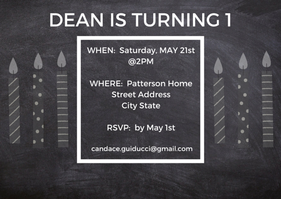 I made the invitations on Canva, which I talked about the online program in this post. I selected Card design graphic for my layout size, uploaded the two Pixaby images and got cooking. One of their free graphics was this Happy Birthday card, which is where I got the image of the candles.